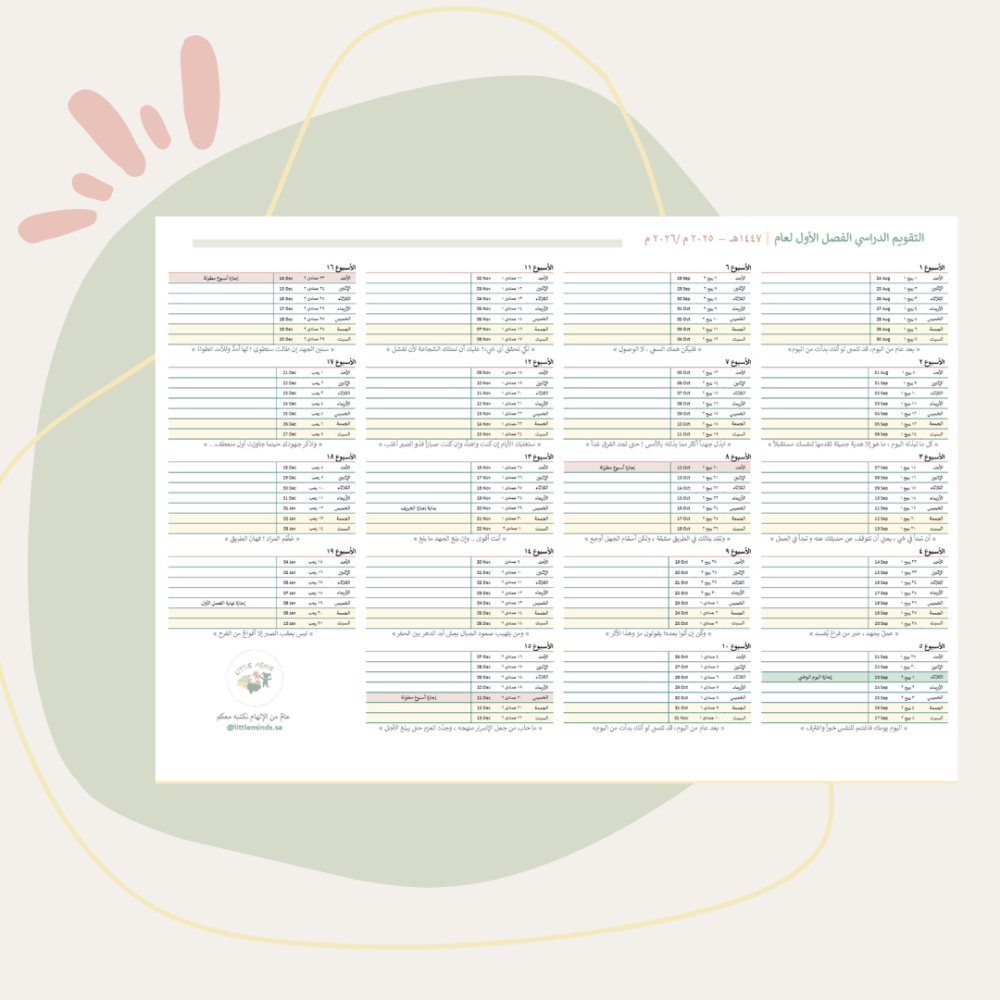 لتقويم الدراسي للفصل الدراسي الأول لعام 1447-1448هـ 2025-2026م.