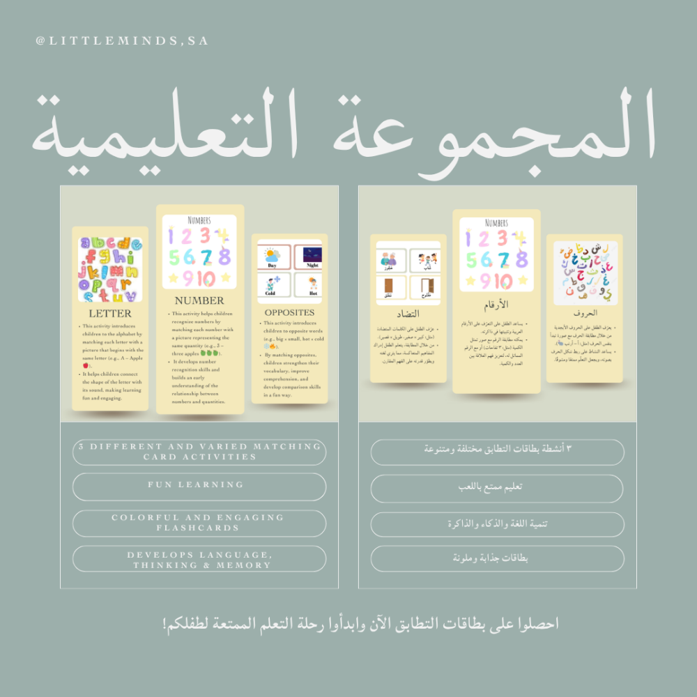 مجموعة تعليمية تفاعلية مطبوعة على شكل بطاقات، تساعد الطفل على التعلّم من خلال اللعب.